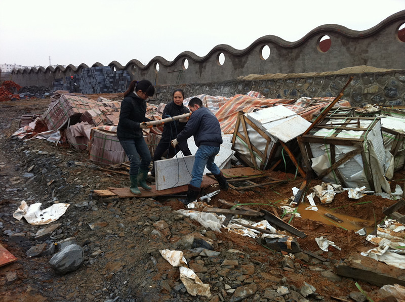 共青城兒童村項(xiàng)目管理人員冒雨工作場(chǎng)景
